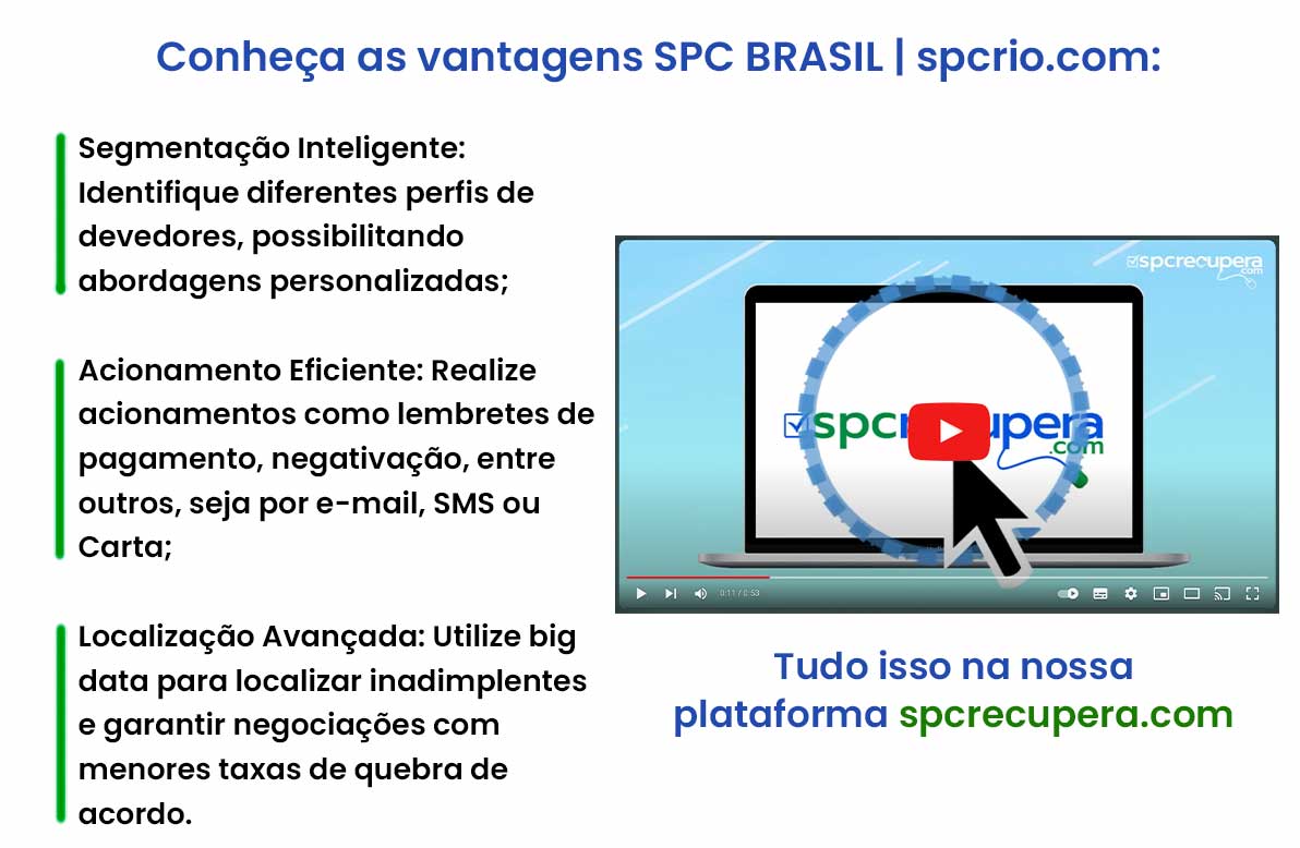 O spcrio.com | SPC BRASIL lhe traz uma vantagem competitiva clara: Reduzir Custos de sua empresa com o atual Banco de Dados / Bureaux de Crédito, ganhando um serviço mais completo, com menores custos, e MUITO MAIS.